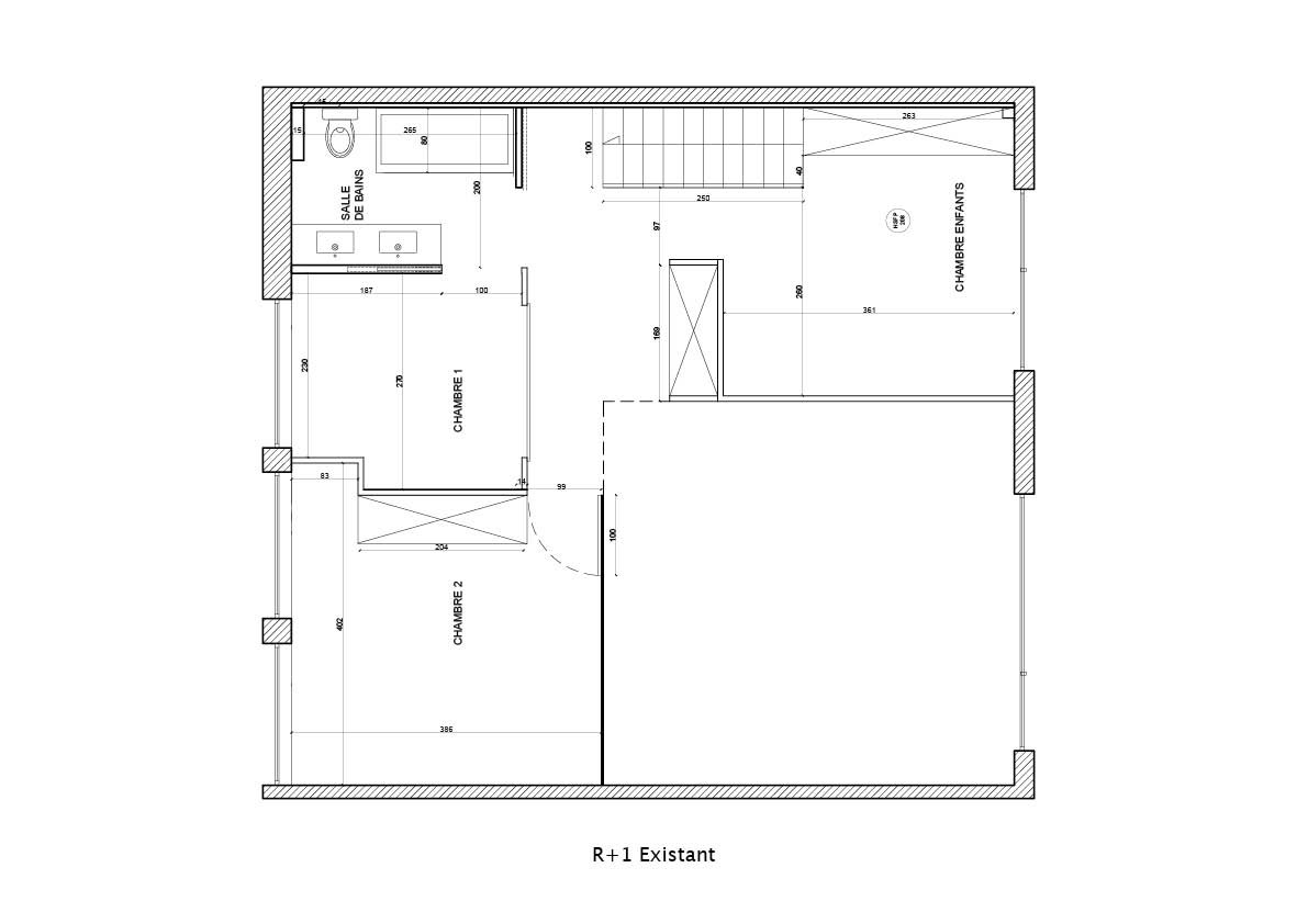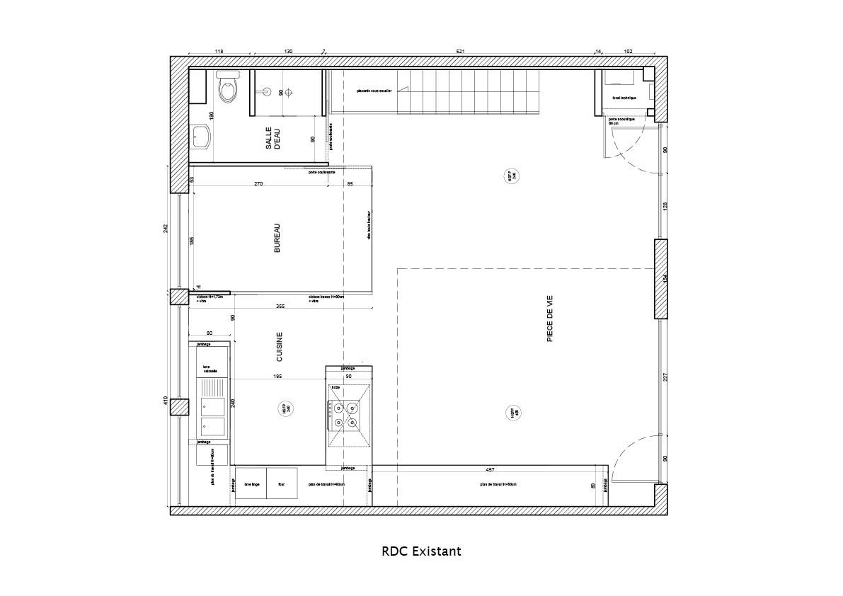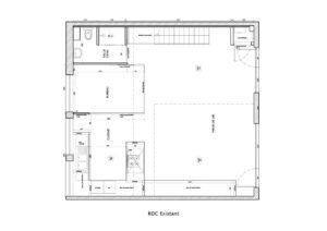 Au rez-de-chaussée, les parois vitrées d’un bureau ont été déposées pour laisser place à une magistrale table de salle à manger réalisée entièrement sur-mesure. Le sol a été comblé avec des plats métalliques laqués en noir, ce qui les inscrit parfaitement dans le projet.