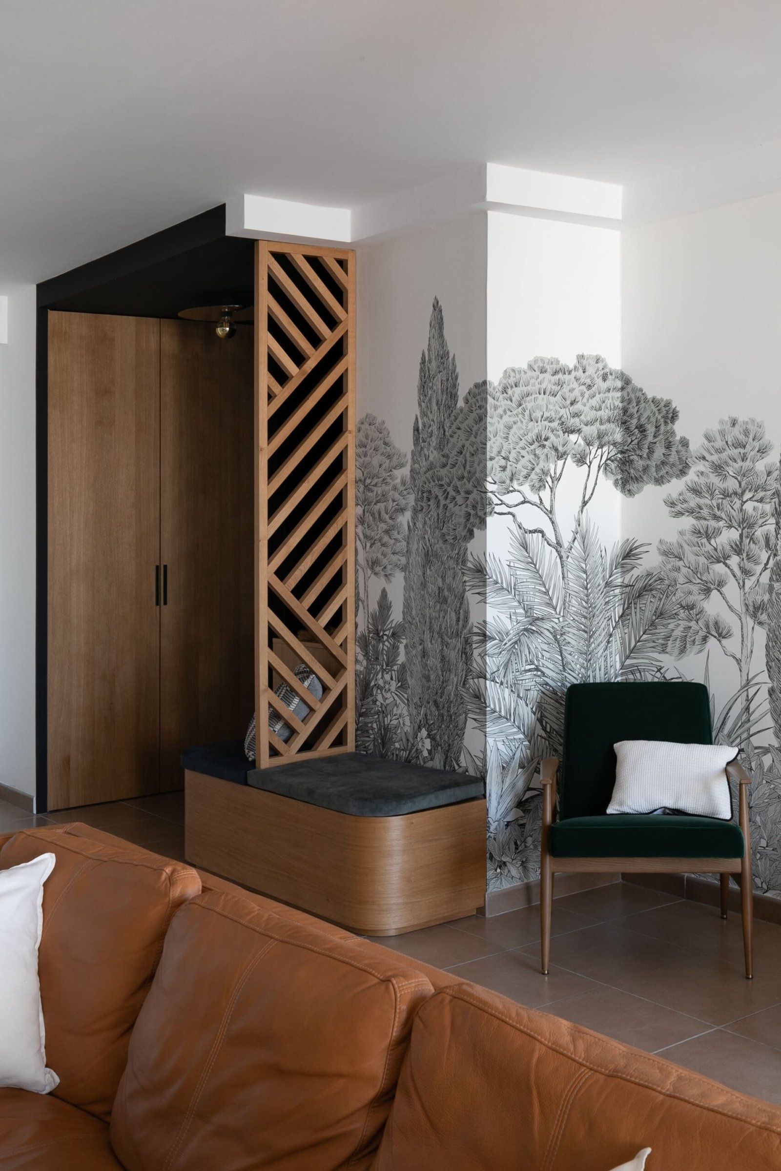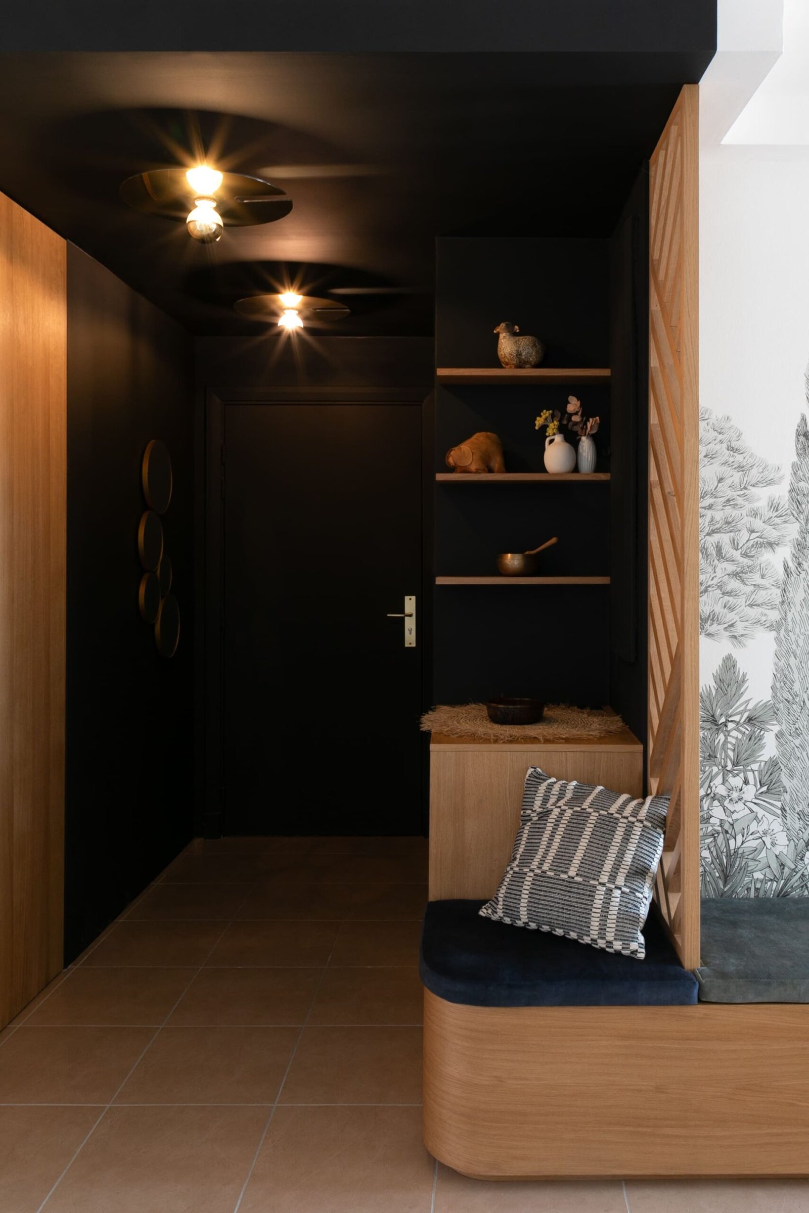 Ce projet de réaménagement et de décoration intérieurs a eu pour objectif d’apporter à cet appartement, tout nouvellement acquis, une décoration d’intérieure affirmée et audacieuse. L’essentiel du travail de rénovation s’est concentré sur l’entrée, la salle à manger et la chambre parentale.